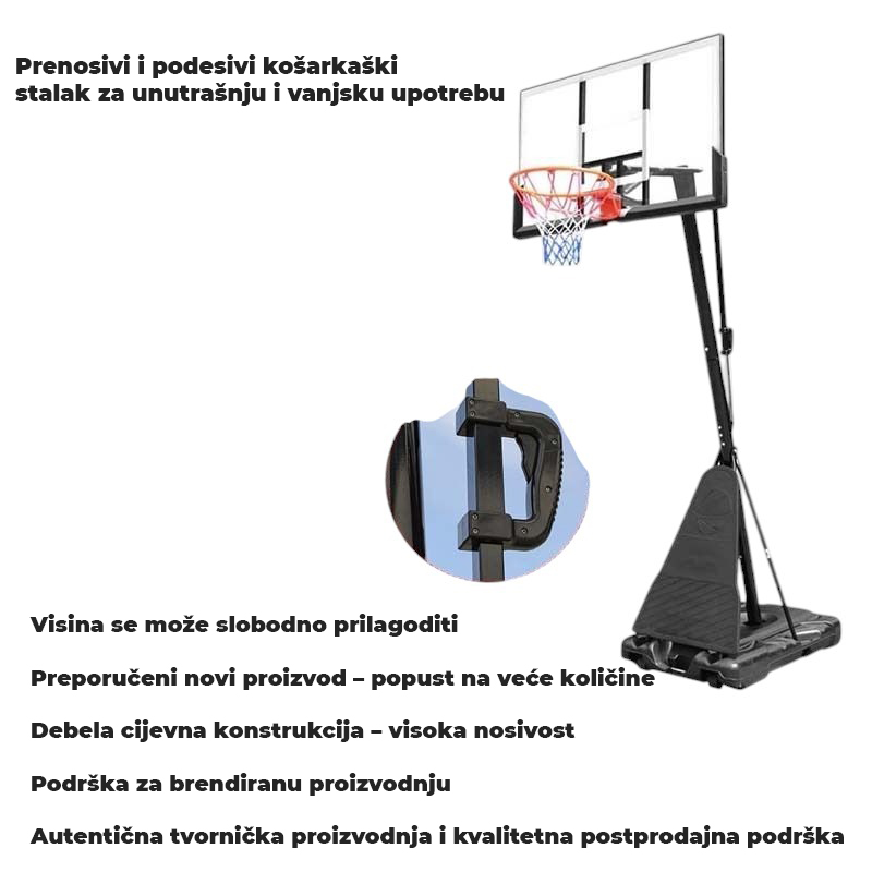 Zahvaljujući jednostavnom podešavanju visine, vrhunskim materijalima i lakoći pomjeranja, predstavlja dugoročnu investiciju za sve ljubitelje košarke.