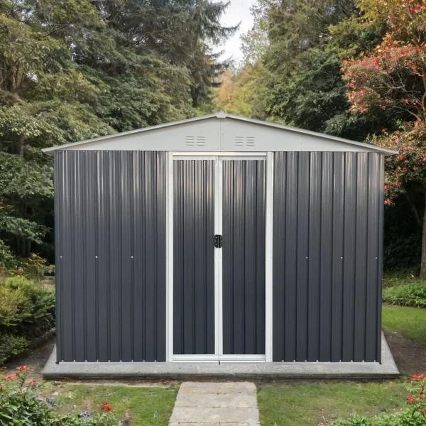 Izrađena od čeličnih panela s zaštitnim filmom, ova šupa osigurava dugotrajnost i otpornost na sunčevu svjetlost i kišu.