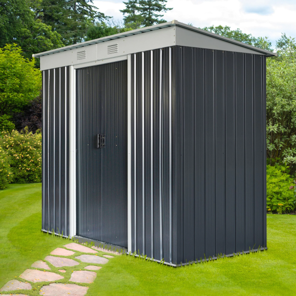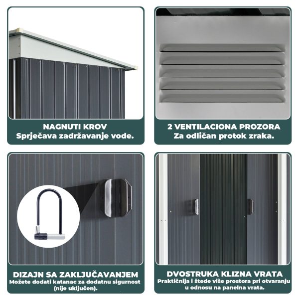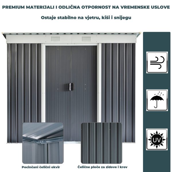 Ova metalna šupa omogućava vam da uredno organizirate svoj vanjski prostor i zaštitite svoje stvari od vremenskih uslova.